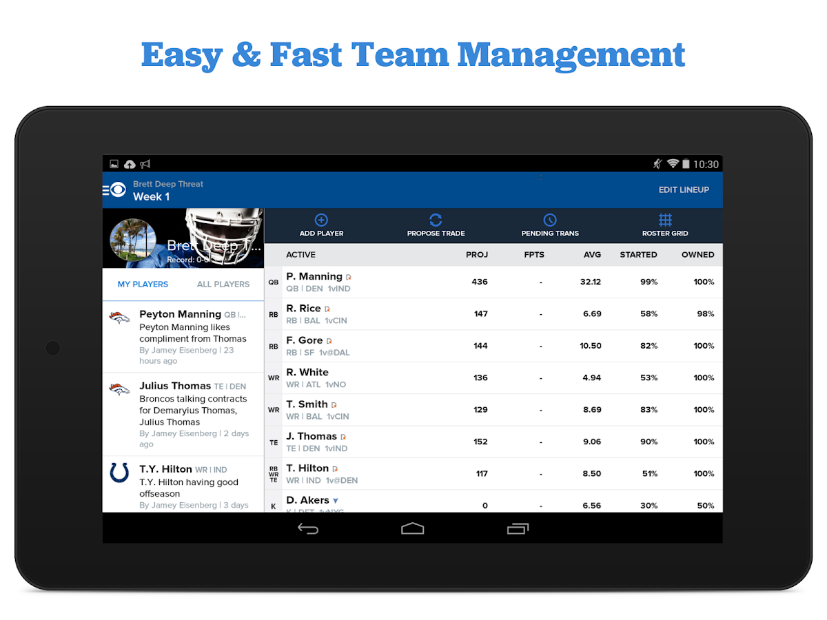 CBS Sports Fantasy - Android Apps on Google Play from lh3.googleusercontent.com Последние твиты от cbs sports fantasy (@cbsfantasy). Manage, track and get the best advice for your fantasy teams all in one place. Use the daily threads for your fantasy needs! All your teams in one place, this app will help you dominate your league whether you play on yahoo!, espn, nfl, or of course cbssports. Is the website down or not working properly? Cbs' fantasy sports sites feature an api that allows you to access data about your league. Skip to content skip to section navigation. See how to get fast and stable connectivity.